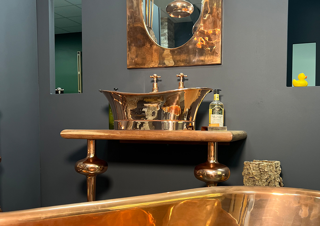 Elevate your space with this exquisite copper bateau basin, masterfully crafted to combine elegance and durability. Featuring a sleek bateau (boat-shaped) design, this basin adds a touch of sophistication to any bathroom or vanity area. The rich, warm tones of the copper surface create a luxurious aesthetic, enhanced by the meticulously rolled edges that add to its refined craftsmanship.