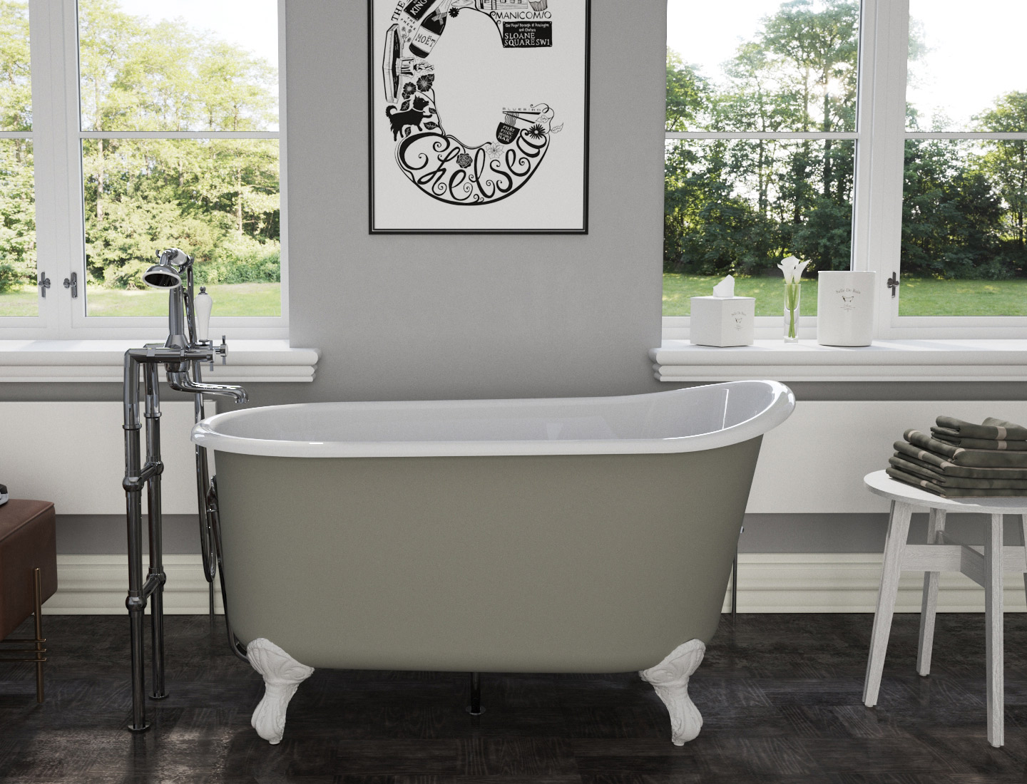 Find my Nearest StockistA petite single ended cast iron slipper bath with claw and ball feet and painted exterior. The interior is white vitreous enamel and this bath is available without tap holes. the exterior can be painted a colour of your choice.