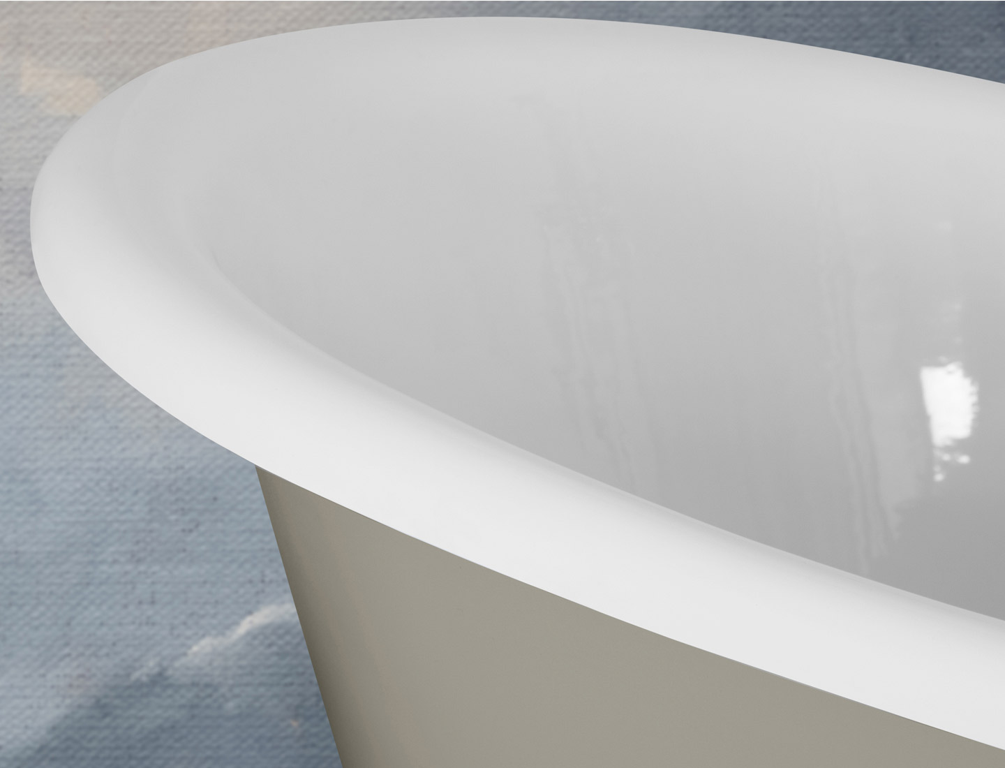 Find my Nearest StockistA double ended roll top bath with slightly raised ends and a tall foot detail which is based on a claw and ball style. Made from cast iron with a painted exterior and a white vitreous enamel interior. The bath can be painted in a colour of your choice and is available without tap holes.