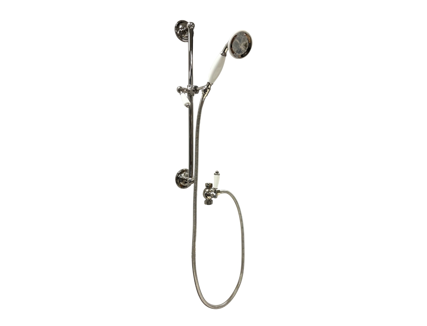 Milton Handheld Shower, supplied complete with matching hose, wall mounted slider rail with holder and diverter valve for installation on a riser rails.