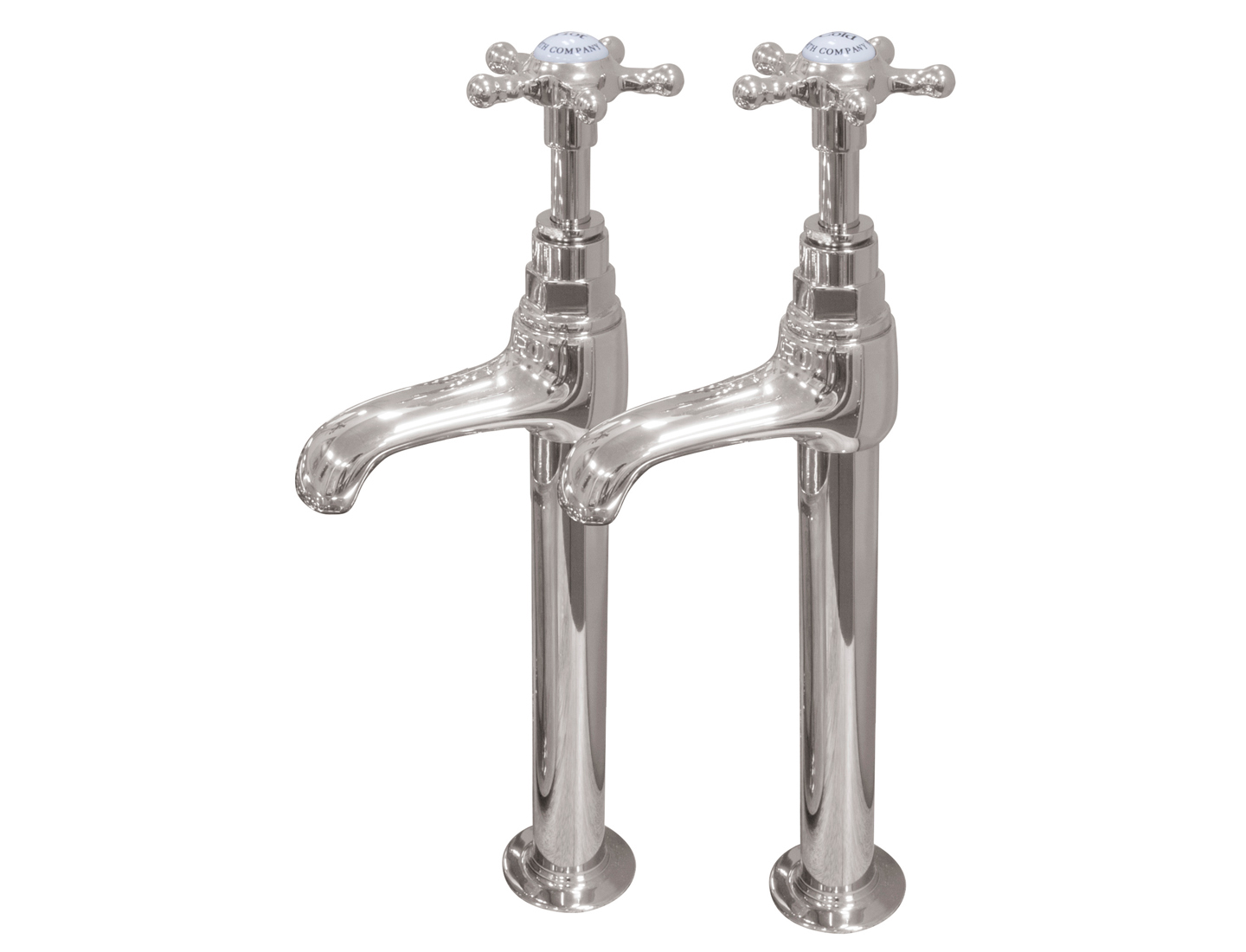 Tall nickel basin taps. Also available in chrome and copper.