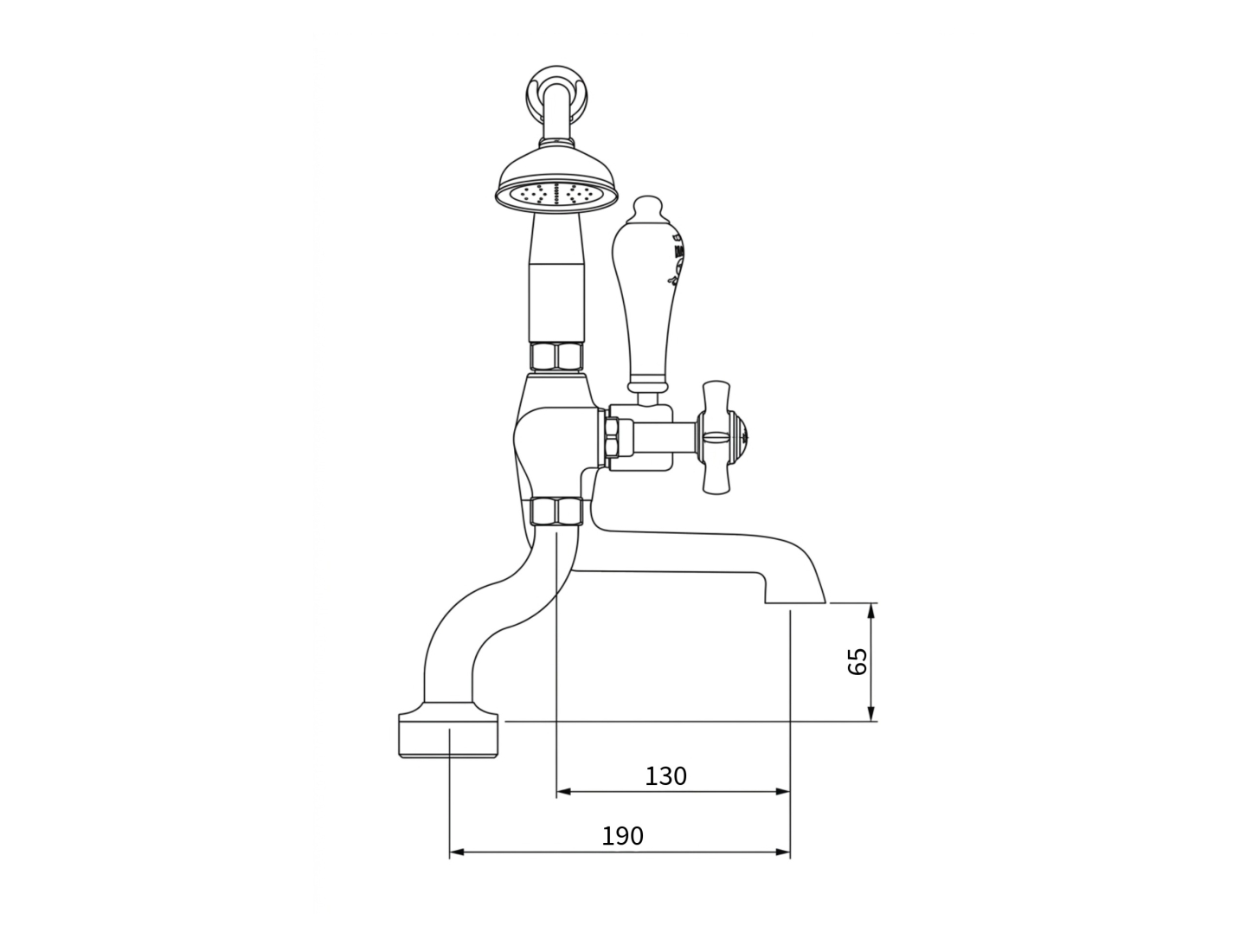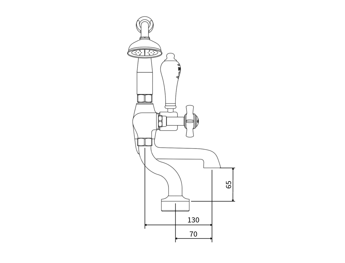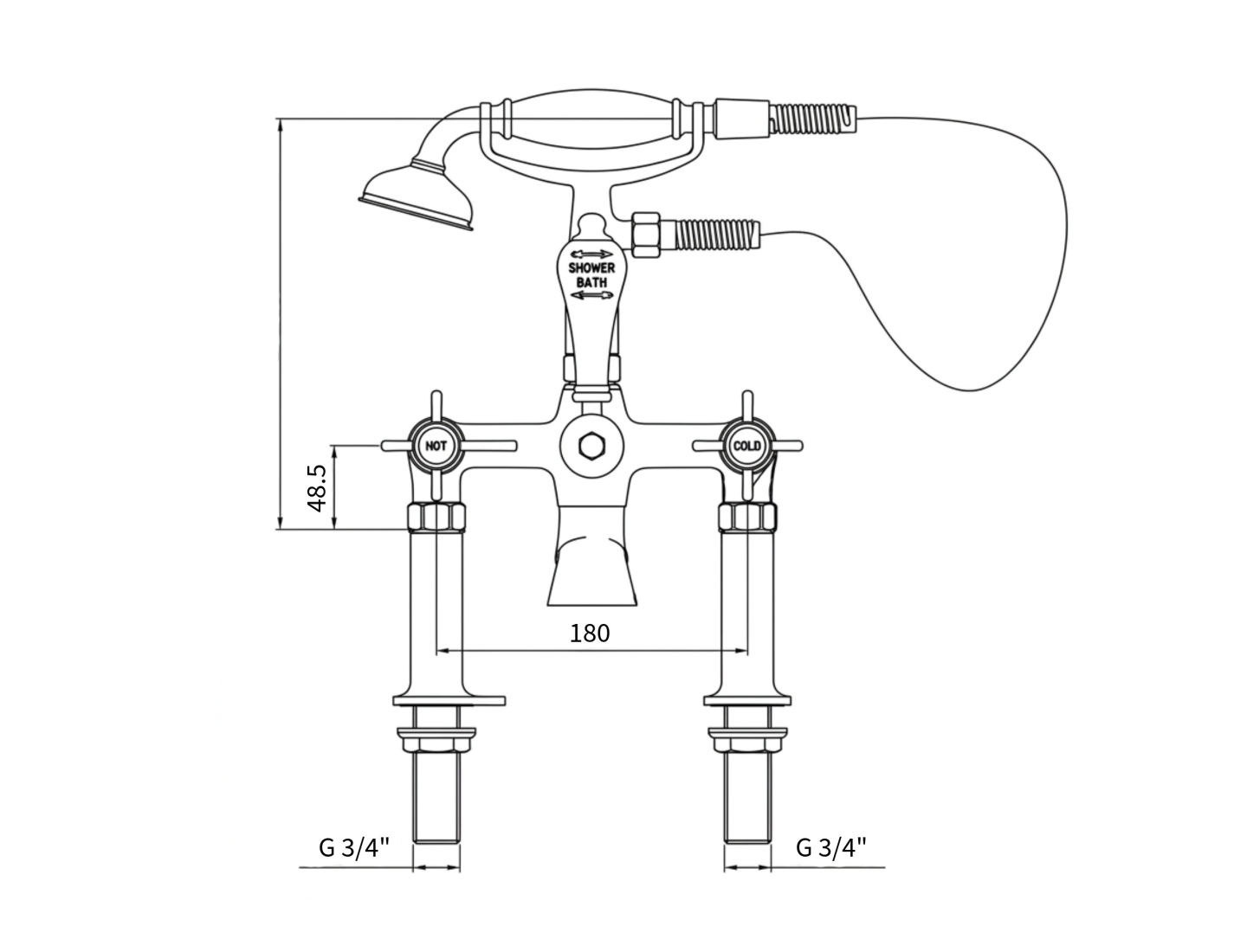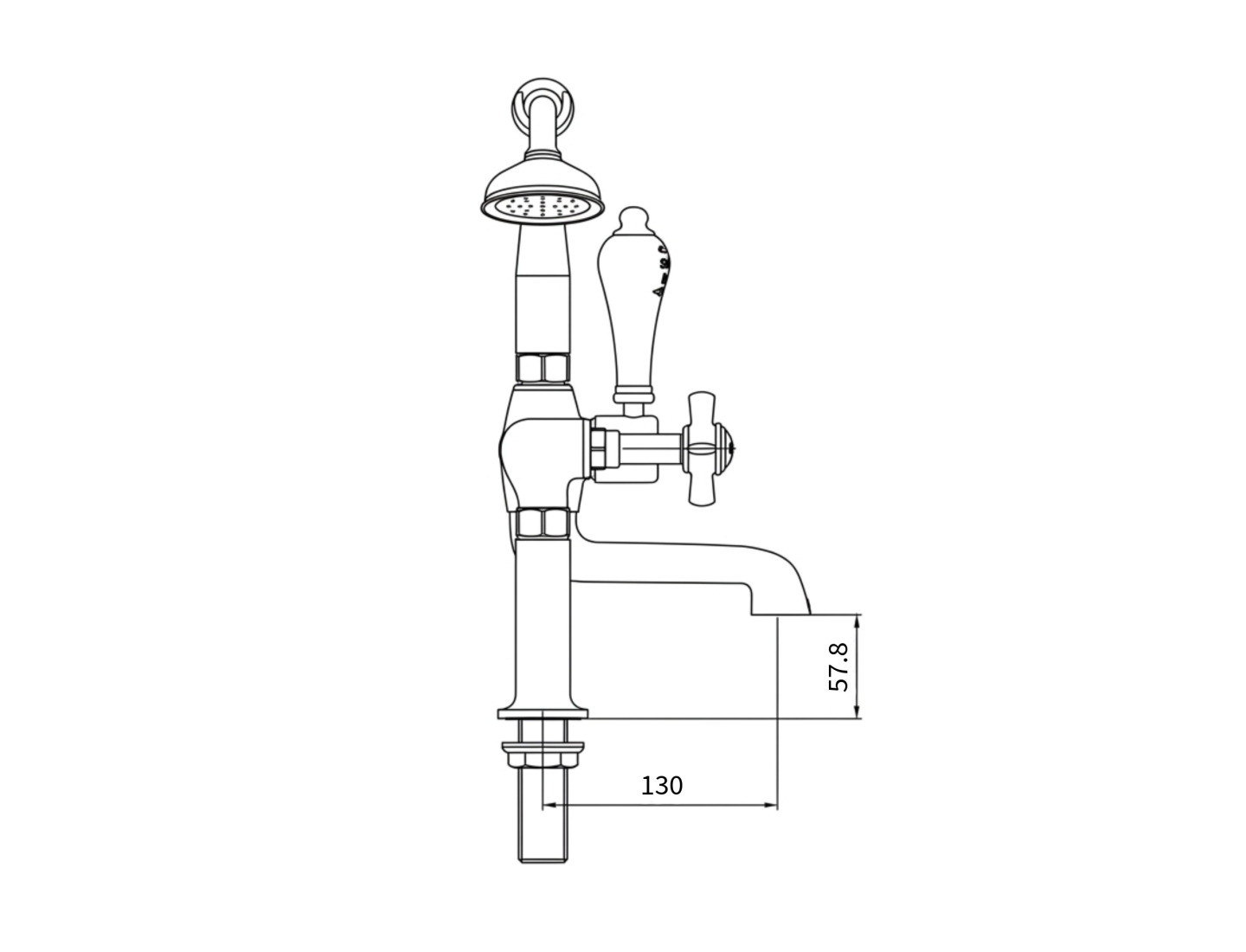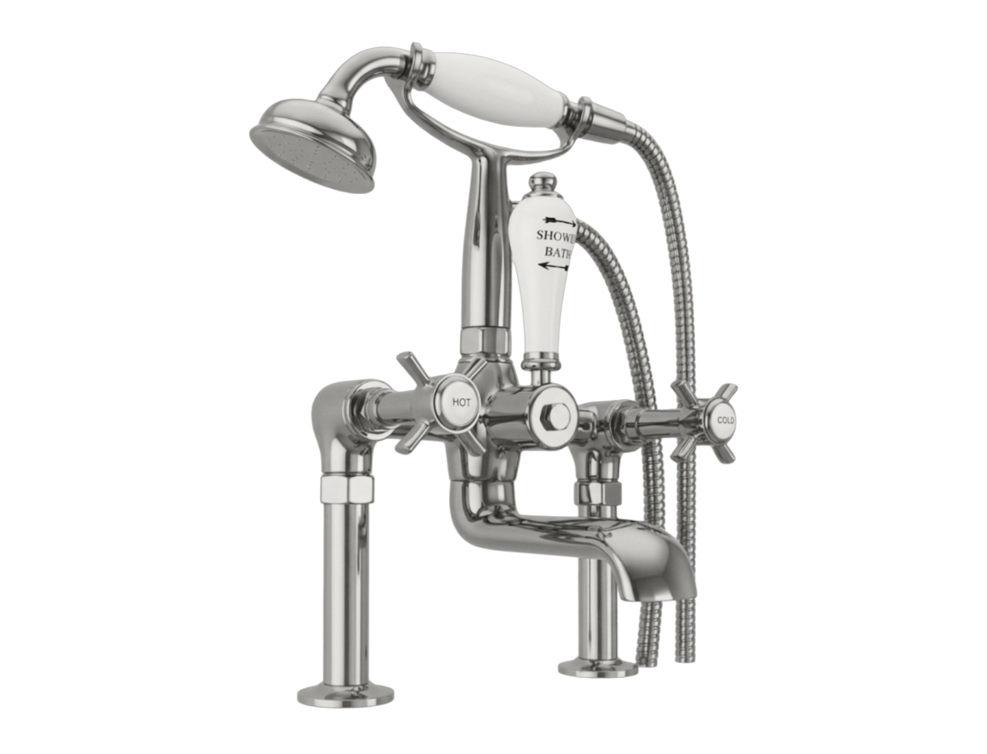 Milton Deck mounted Bath shower mixer tap, supplied complete with hose and handheld shower, which can be stored in the cradle when not in use. Combining traditional styling with durable ceramic valve technology, which compliments our extensive range of cast iron and copper baths.